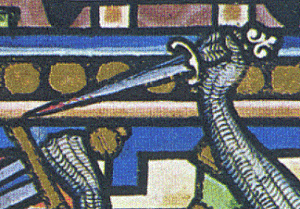 | Венгерская сабля 10 века. Прекрасный образец во всех отношениях. | Икона св. Георгия 11 века. Монастырь Ватопеди. Греция. | Святой Меркурий. Фреска. Церковь в Охрид 1295 год. Сербия. |