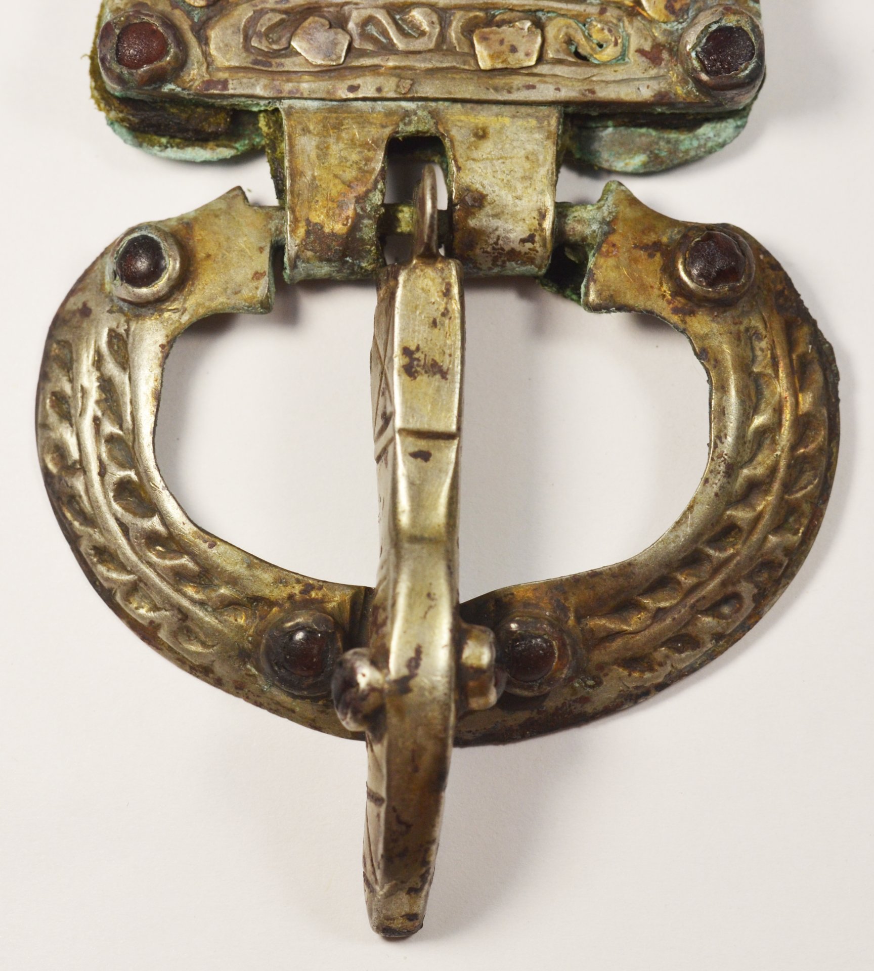 Описание: Размер пряжки 16,5 на 7 см. Вес 137,57 грамма. Язычок отломан, по фото видно. Фибулы билоновые 11,7 см на 4,5 см. Вес обеих 21,44 грамма. На одной фибуле приклеен кончик,по фото видно. Фибулы серебро, гранаты 8,5 см на 4,5 см. Вес обеих 34,28 грамма. «Камень жизни» рукояти меча – горный хрусталь 4 см на 3,1 см на 1,9 см. Вес: 37,62 грамма. Бусы общая длина: 1 м 14 см |