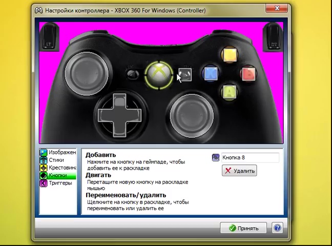 - Создание раскладки кнопок для любого контроллера доступного в Windows